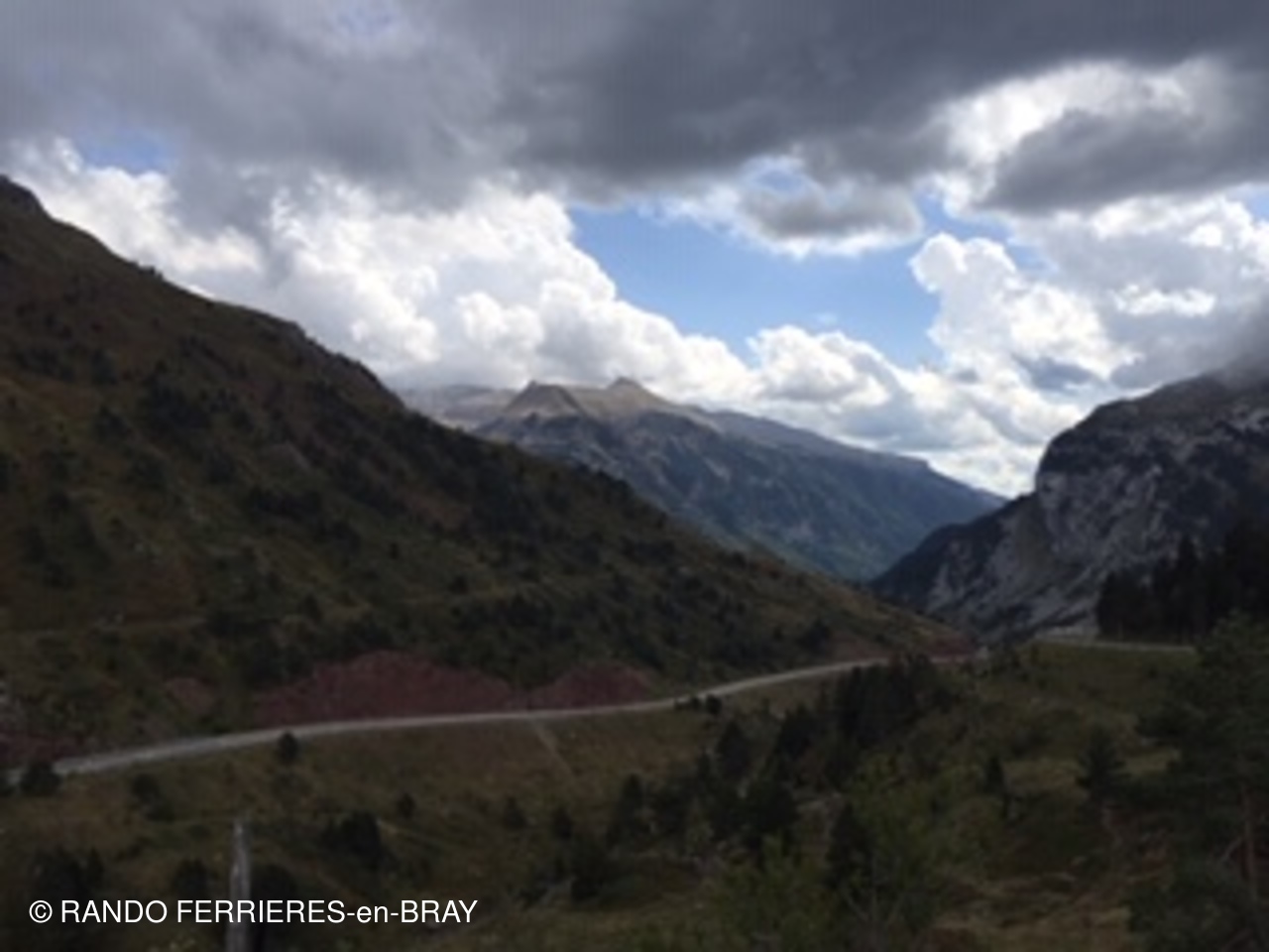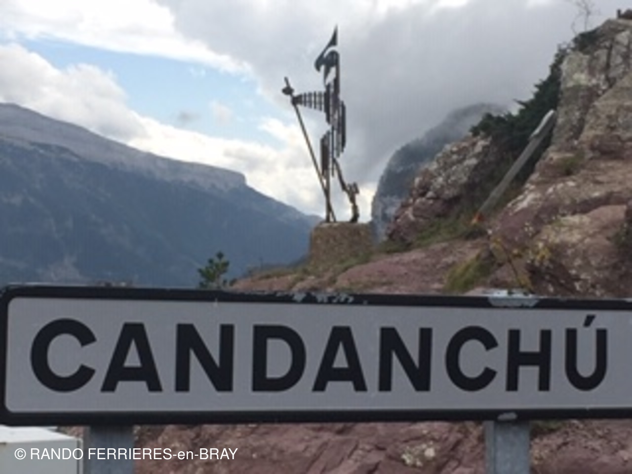 Aujourd'hui gros dénivelé sur une petite étape :900m d'ascension pour 15km de parcours : le Somport 1640m et pas un chat « nada » depuis que le tunnel est ouvert. Pas un seul établissement ouvert côté français comme côté espagnol. Daniel voulait me faire découvrir un bon restaurant espagnol : raté. Il faut revenir en décembre à la saison du ski. Pas de bus pour revenir. Au bout de 2 h d'attente d'une rare voiture qui aurait pu rapatrier 2 pèlerins en détresse, la Guardia civile a voulu nous aider. A ce moment là un automobiliste français est passé et a proposé de nous prendre en charge Ouuuuf! L'orage menaçait .
