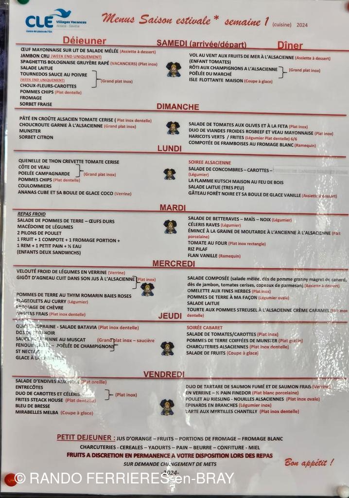 Mai 2024 séjour en ALSACE Saint Nabor nos menus